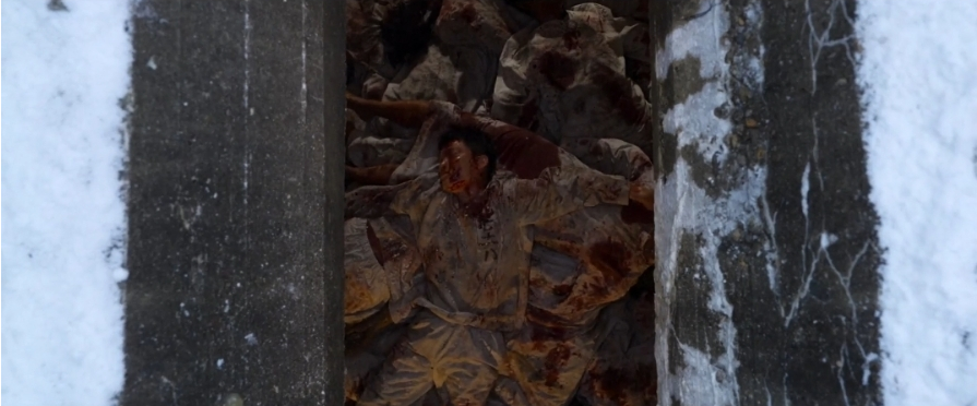 이 에피소드의 시작은 옹성병원에서 원장 이치로와 중좌 가토가 조선인들을 대상으로 잔인한 생체실험을 진행하는 장면입니다. 그들은 비밀공간에서 괴물 같은 크리처를 만들어내는데, 그 과정은 퇴각 명령이 떨어질 때까지 계속됩니다. 퇴각 명령이 떨어지자 일본군은 병원 전체를 소각하게 됩니다.