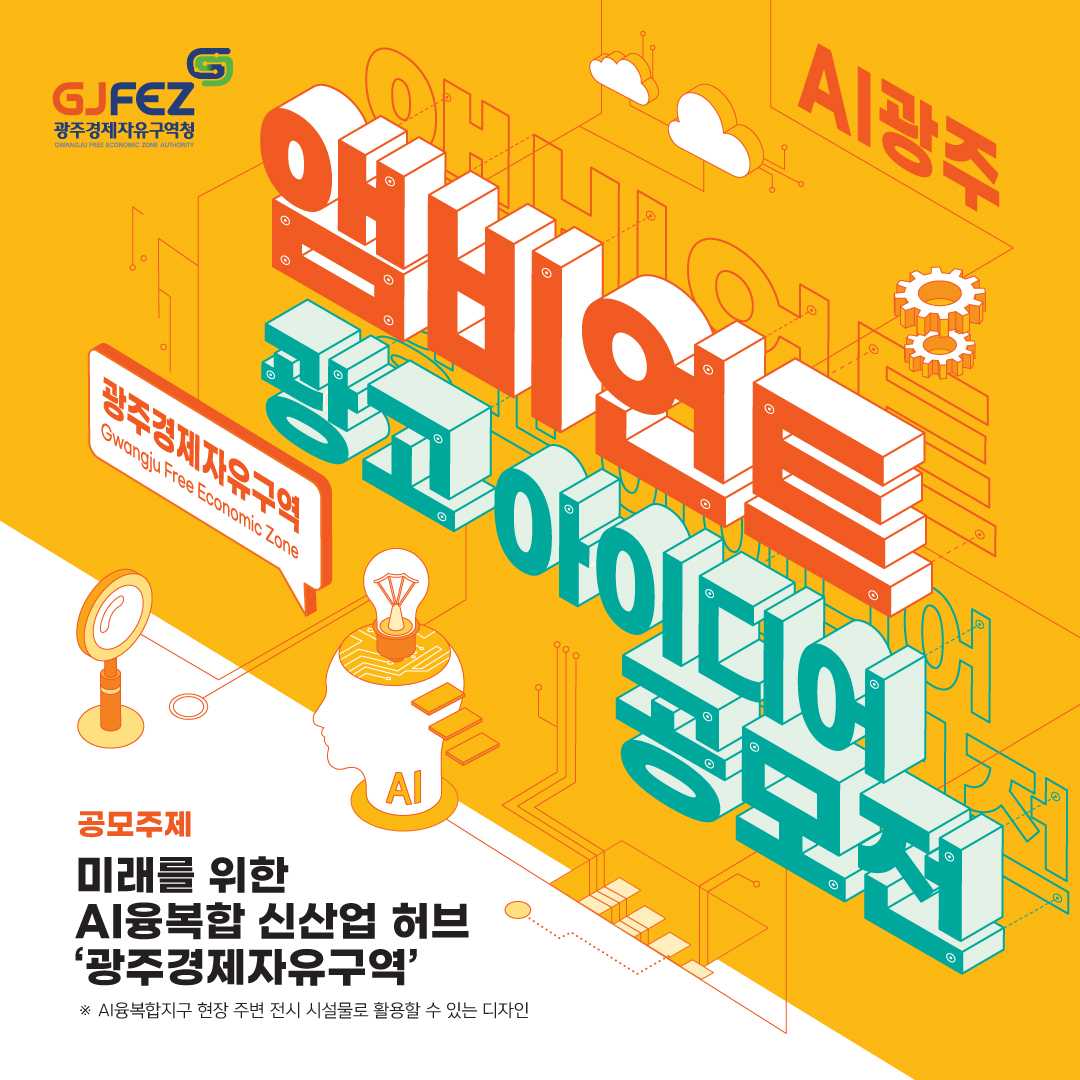 - 공모 내용: 광주경제자유구역청(GJFEZ)에서는 AI융복합 산업 도시 광주와 광주경제자유구역의 이미지 제고를 위한 앰비언트 광고 아이디어를 공모합니다.