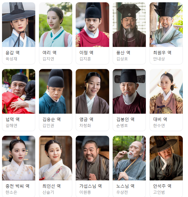 맹인 술사이자 과거 펄척귀를 궁궐로 불러들인 인물. 여리의 조력자 역할을 하며 드라마 내에서 잔잔한 유머와 깊이를 더해주는 역할이에요.
