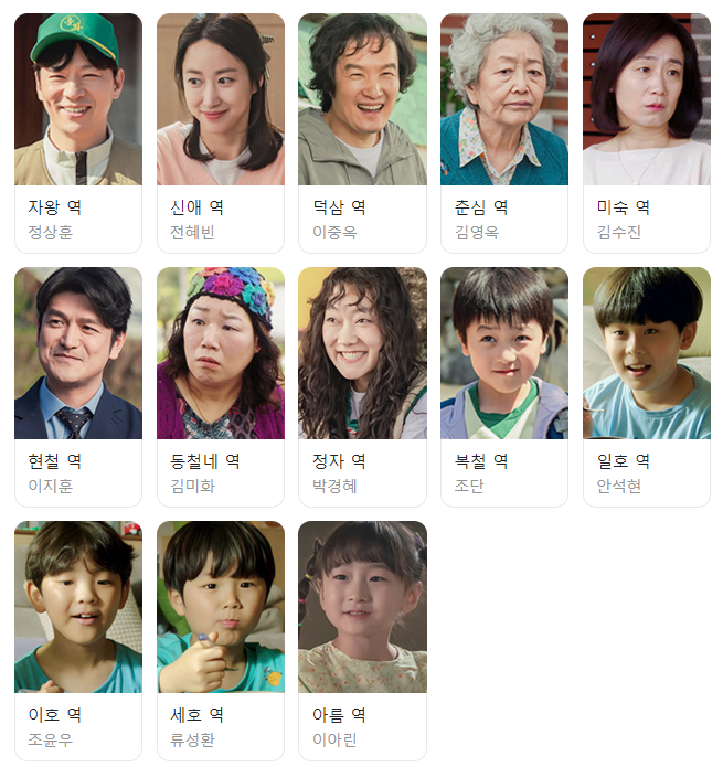 - 정상훈: 이장 역할을 맡았으며, 옹화마을의 평범한 주민으로 장난꾸러기 아들 셋을 키우며 아내와 함께 행복하게 살아가고 있습니다.