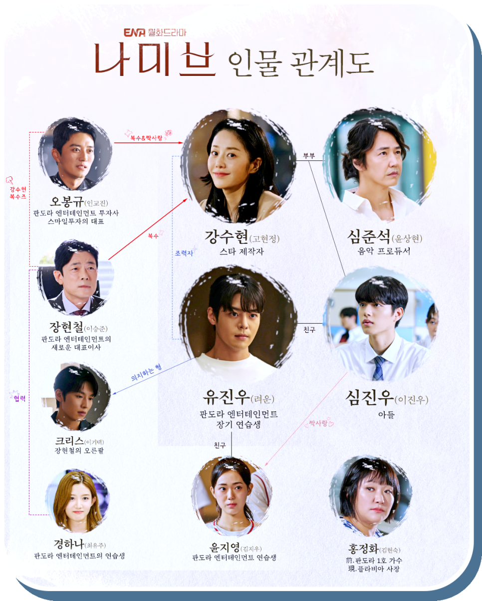 '나미브'는 엔터테인먼트 업계에서 쫓겨난 제작자 강수현과 과거의 상처를 딛고 일어서려는 연습생 유진우의 인생 역전 프로젝트를 그리고 있는데요. 강수현은 퇴직금 대신 연습생 유진우를 인수해 스타로 키우기로 결심합니다.