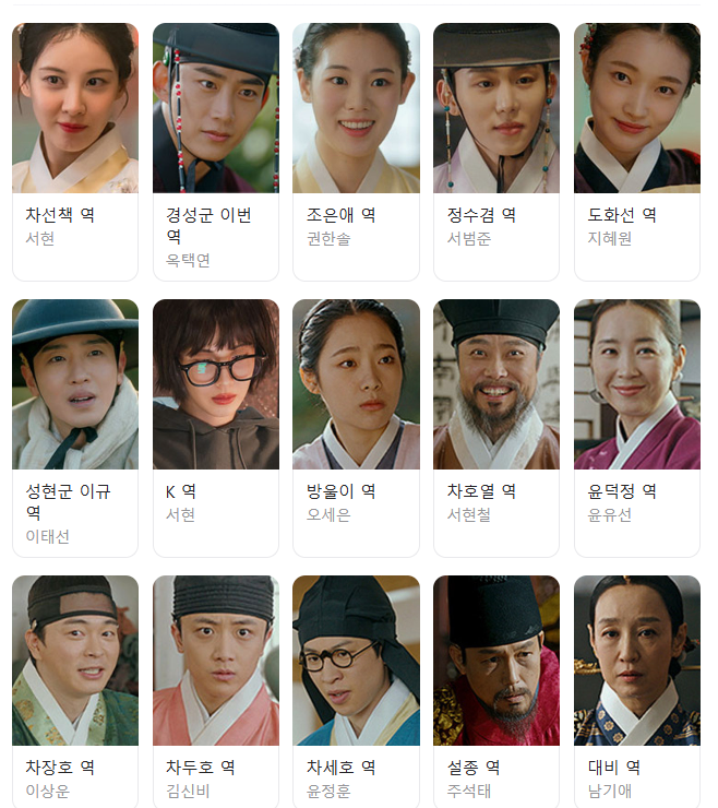 | 서범준 | 정수겸 | 홍문관 천재 서브남, 서글서글한 미소로 치명적 서브병 유발 |