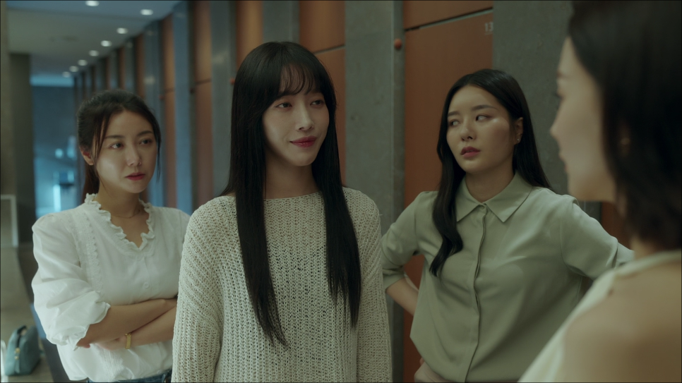 과거처럼 화장실에서 가해자들과 당당히 맞서는 지원의 모습은 그녀의 변화를 보여줍니다. 그녀는 박민환과는 썸이 아닌 남자친구, 대기업 계약직이 아닌 정직원 대리라고 말합니다.