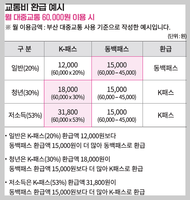 K패스-동백을 이용하면, 부산 시민들은 대중교통 이용 시 더 큰 환급 혜택을 받을 수 있으며, 이는 시민들의 대중교통 이용을 장려하고, 교통비 부담을 크게 줄여줍니다.