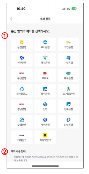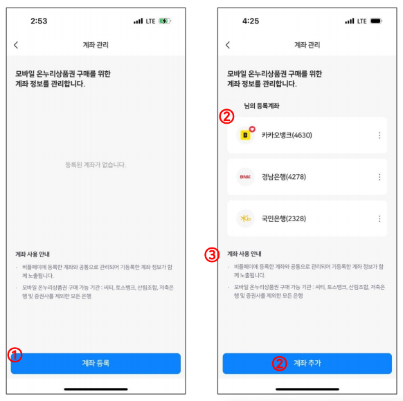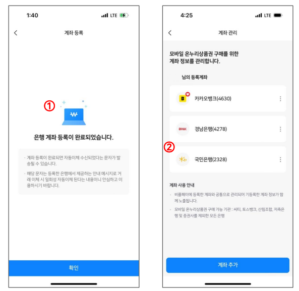 상품권 구매 및 환불을 위해 등록할 본인 명의의 계좌를 선택합니다