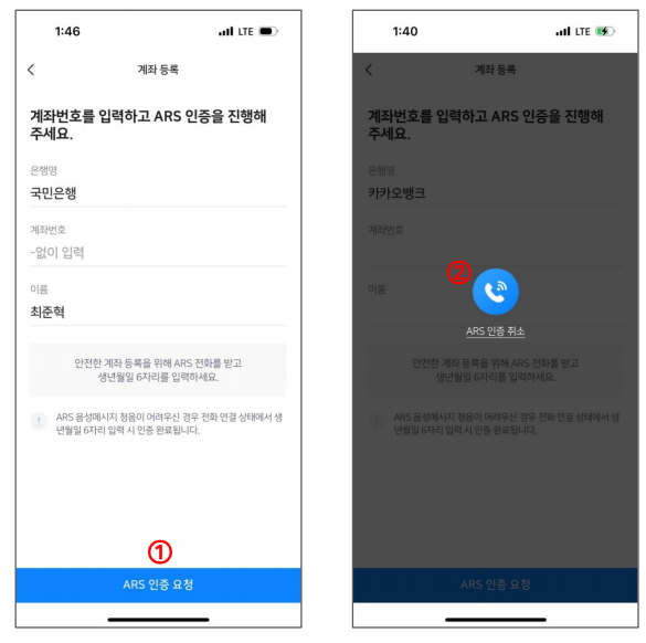 ARS 인증 완료 후 계좌 등록이 완료되며 , 계좌 등록 완료 안내 알림을 수신할 수 있습니다 |