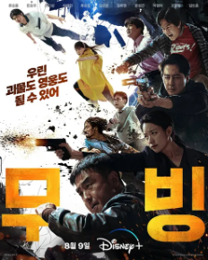 디즈니+ 오리지널(https://www.disneyplus.com/) 드라마 '무빙'은 2023년 8월 9일부터 9월 20일까지 방영된 초능력을 가진 아이들과 과거의 비밀을 품은 부모들이 위험에 맞서는 휴먼 액션 시리즈입니다. 웹툰을 원작으로 하며, 세대 간의 갈등과 현재와 과거의 대립이 주제로 다루지며, 초능력자들의 대결을 중심으로 펼쳐지는 액션 드라마입니다.