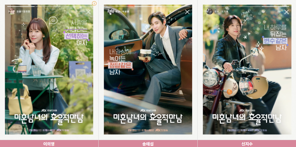 안정감을 주는 태섭과 설렘을 주는 지수 — 두 남자 사이에서 끌리고 흔들리며 진짜 사랑의 의미를 찾아가는 이의영의 이야기가 드라마의 핵심입니다.