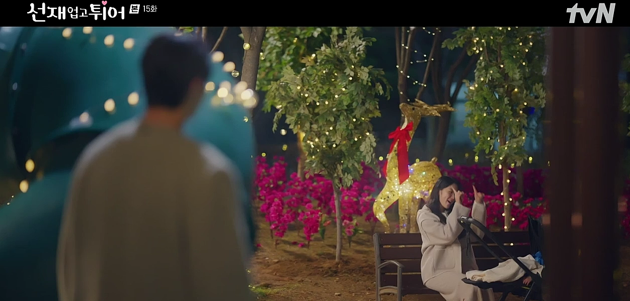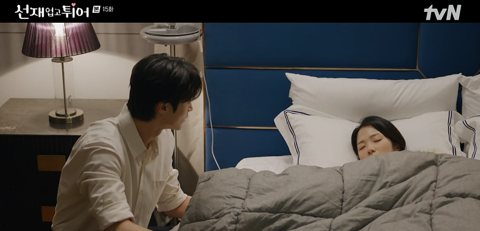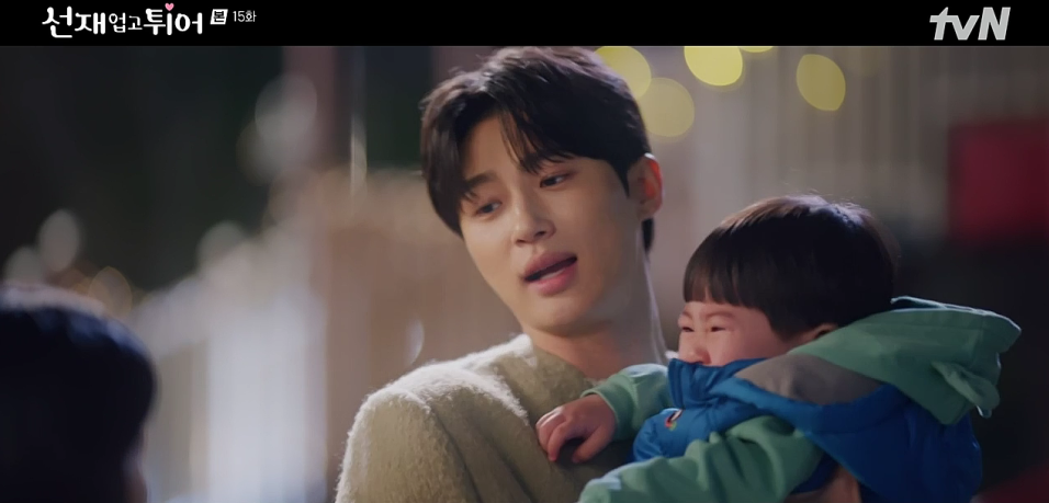 선재는 솔을 피하려고 미끄럼틀로 숨어들지만 핸드폰을 떨어뜨려 들키고 맙니다. 솔의 조카가 토를 하는 상황에서 선재는 옷을 벗고 나와 씻어야 하는 상황이 연출됩니다. 이를 본 솔은 깜짝 놀랍니다. 가족들이 잠든 틈에 선재는 솔의 집을 나가려다 문틈 사이로 솔과 눈이 마주치고, 과거에 그녀와 키스했던 장면을 떠올리며 당황합니다.