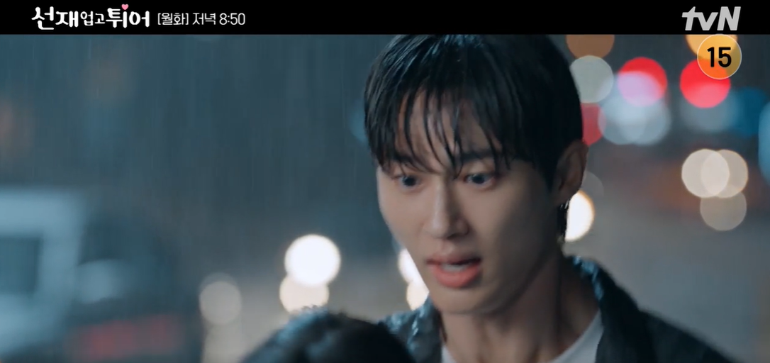 비가 내리는 어느 날, 솔이는 집으로 가는 길에 사고를 당했던 날을 회상하며 길을 건너지 못하게 됩니다. 그 순간, 선재가 나타나 솔이를 구하고, 솔이는 선재의 품에 안깁니다.