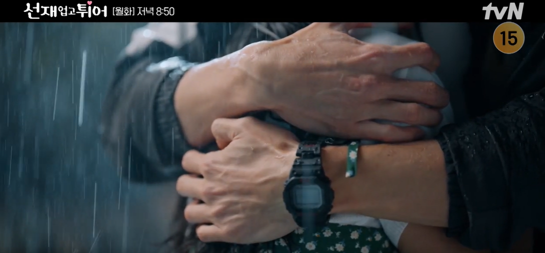 비가 내리는 어느 날, 솔이는 집으로 가는 길에 사고를 당했던 날을 회상하며 길을 건너지 못하게 됩니다. 그 순간, 선재가 나타나 솔이를 구하고, 솔이는 선재의 품에 안깁니다.