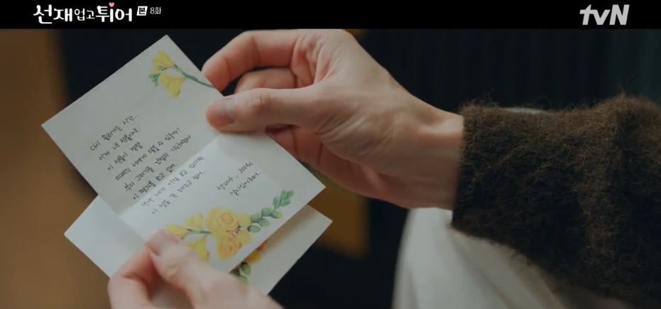 선재는 과거 솔이와의 약속을 기억했습니다. 혼자 타임캡슐을 찾아내고, 약속된 날 다리에서 솔이를 기다렸지만, 솔이는 나타나지 않았습니다. 타임캡슐 안에는 솔이가 남긴 감사의 편지가 들어있었고, 선재는 그 편지를 읽으며 깊은 생각에 잠깁니다.
