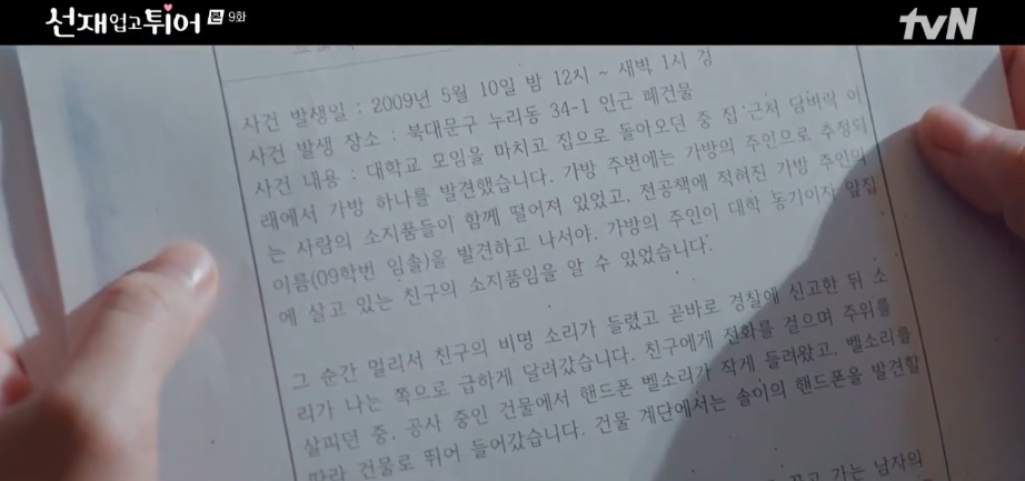 - 솔이는 경찰에게 주양 저수지 사건에 대해 진술합니다.