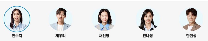 - 진나영 (배우: 강별): 리포터로 활동 중입니다. 아나운서를 꿈꾸지만 합격하지 못하고, 리포터로 활동하고 있습니다.