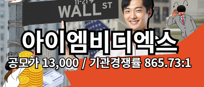 이번 포스팅에서는 아이엠비디엑스의 공모주 청약에 대해서 알아보겠습니다. 증거금, 주관사, 공모가, 청약 일정 및 수요 예측 결과 등에 대한 정보를 한눈에 파악할 수 있도록 정리해드릴게요! 📊