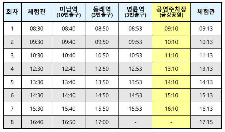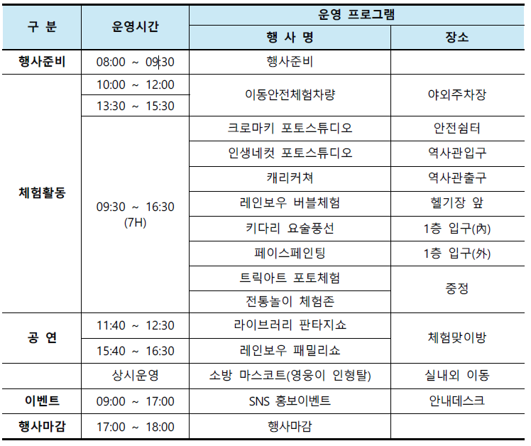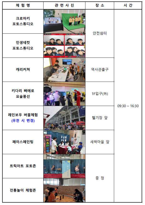 - 장소: 체험관 1층 실내 로비, 야외광장, 주차장 등