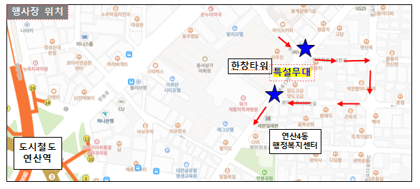연산동 한창타워 앞 특설무대(고분로13번길 25)