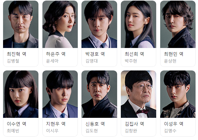 - 출연진: 김병철(최진혁 역), 윤세아(하은주 역), 김영대(박경호 역), 박주현(최선희 역), 윤상현(최현민 역), 최예빈(이수연 역), 이시우(지현우 역)