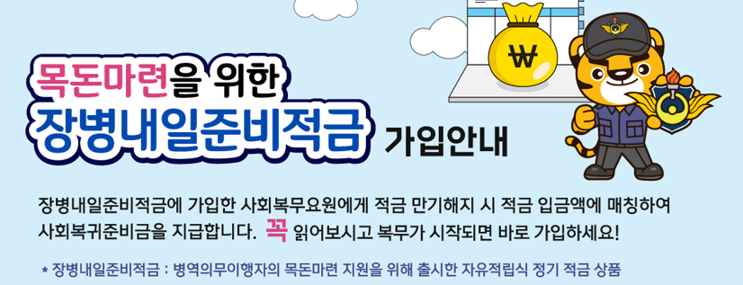 여러분의 미래를 위해 오늘부터 준비해보는 것은 어떨까요? 좀더 자세한 정보는 국방부 홈페이지나 가까운 은행에 문의해보세요. 여러분의 밝은 미래를 응원합니다! 🚀