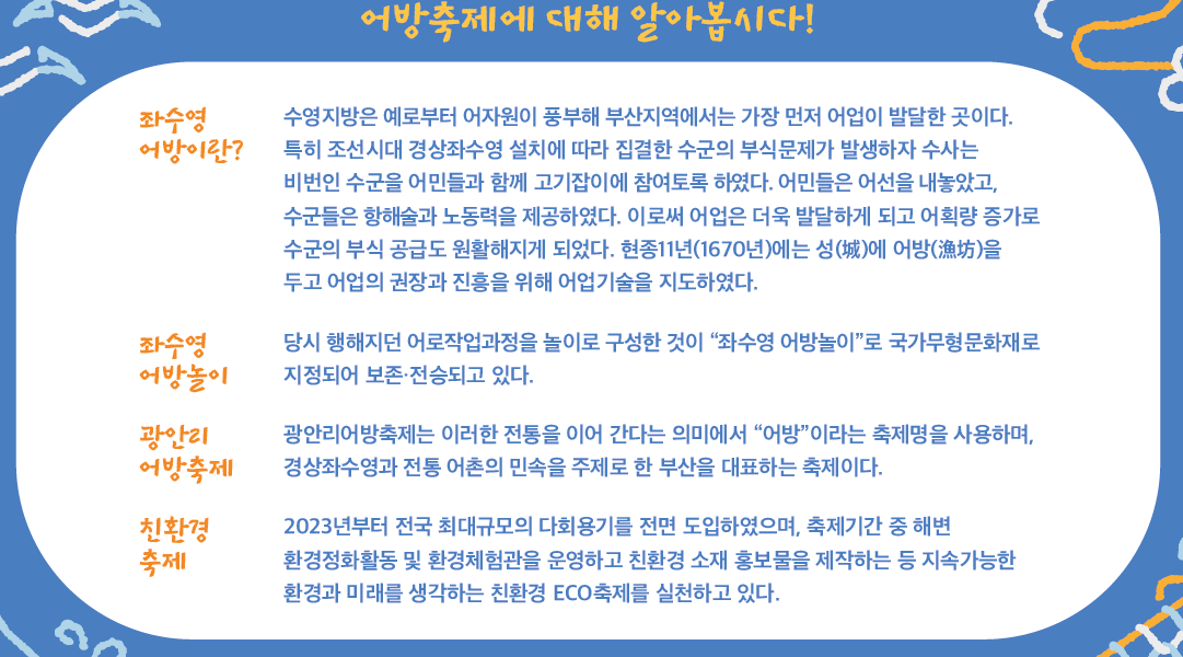 - 행사장소: 광안리해변 및 수영사적공원 일원