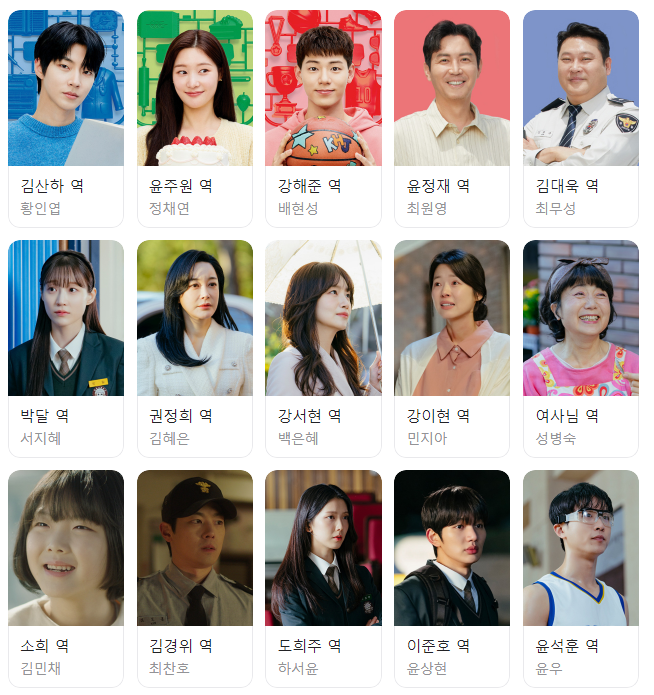 김산하(황인엽)는 명주대 병원 정형외과 레지던트로, 죽은 소정의 오빠이자 주원의 연인이며, 윤주원(정채연)은 달달 베이커리 사장으로, 정재의 딸이자 산하의 연인입니다. 강해준(배현성)은 전 농구부 출신으로 현재는 백수이며, 동구와 서현의 아들입니다. 이들은 10년 전 가족처럼 지내던 시절을 떠올리며 다시 만나게 됩니다.