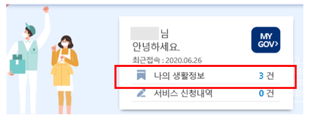 정부24 로그인 후 ‘나의 생활정보’ 클릭