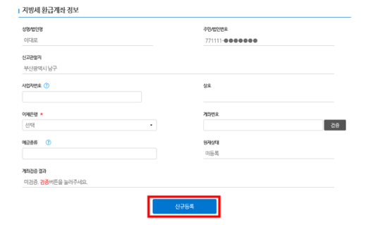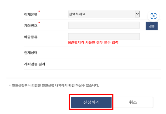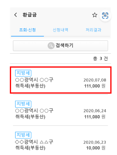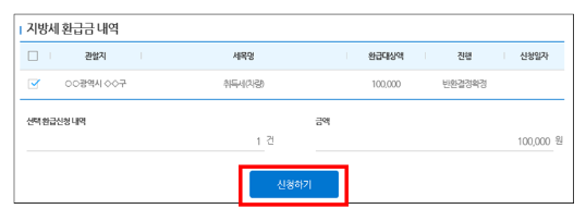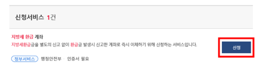 검색결과에서지방세환급 계좌 ‘신청‘ 클릭