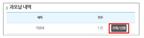 ※ 조회/신청 버튼 클릭 시 위택스 로그인 화면으로 이동합니다. (비회원조회의 경우 로그인 후 신청 가능)