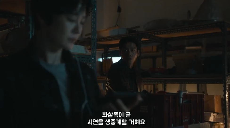 지옥 시즌2 6화에서는 화살촉은 부활자를 납치하려는 소도 일원이 잠입했다고 주장하며, 그가 곧 시연을 받을 죄인이라고 발표합니다.