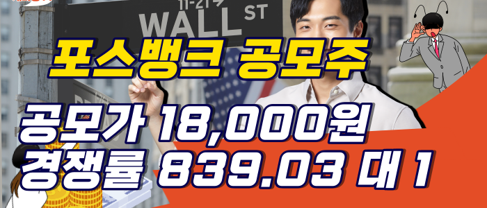 포스뱅크는 1월 5일부터 11일까지의 수요 예측 기간 동안 2104개의 국내외 기관이 참여하여 총 9억3340만2000주를 신청했습니다. 이는 높은 경쟁률인 839.03대 1을 기록했습니다.