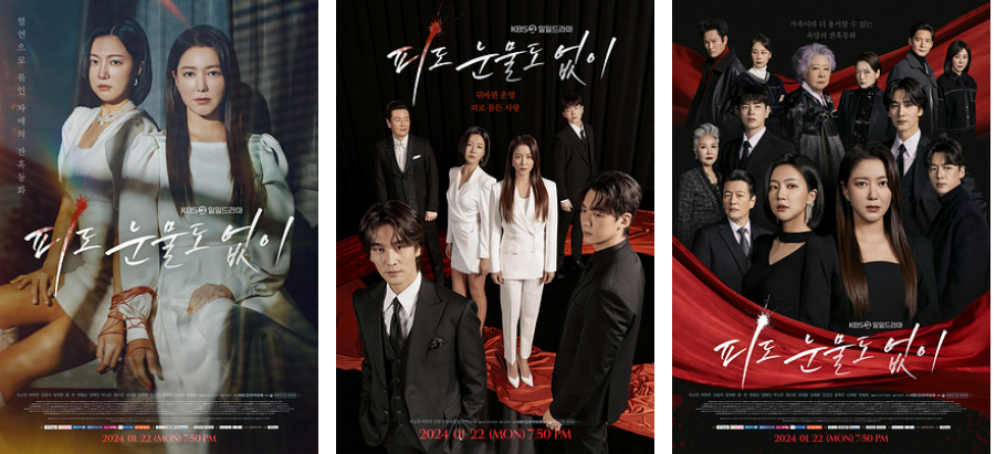 '피도 눈물도 없이'는 2024년 1월 22일 월요일 오후 7시 50분에 KBS2TV에서 첫 방송되었으며, OTT 스트리밍 플랫폼 웨이브에서도 시청할 수 있으며, 103부작입니다.