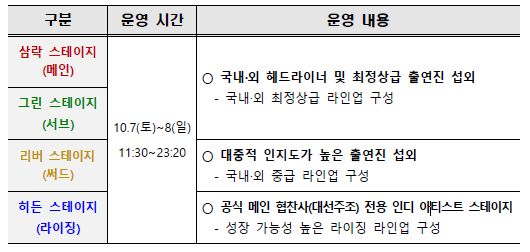 리버 스테이지(신설), 라이징 스테이지(확장)을 통한 다양한 아티스트 공연 제공