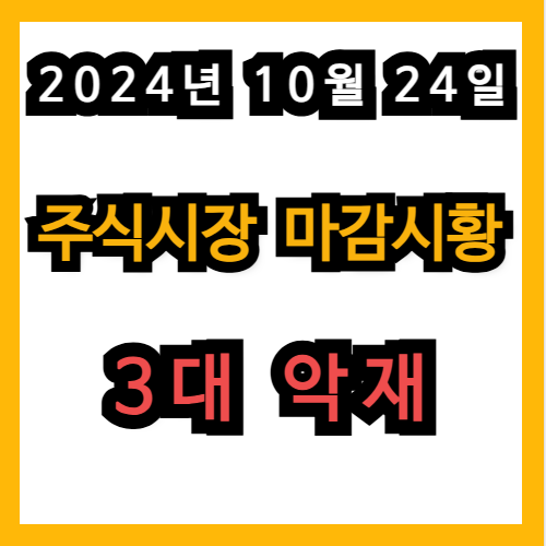 2024년 10월 24일 목요일 코스피, 코스닥 양대 주식시장이 하락으로 마감되었는데요. 2024년 10월 24일 목요일, 주식시장은 여러 악재로 인해 하락세를 보였습니다. 금리 상승, 애플의 아이폰 16 판매 부진 우려, 그리고 미국 대선의 불확실성이 주요 요인으로 작용했습니다.