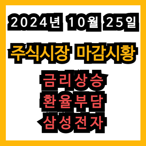 2024년 10월 24일 목요일 코스피, 코스닥 양대 주식시장이 하락으로 마감되었는데요. 2024년 10월 24일 목요일, 주식시장은 여러 악재로 인해 하락세를 보였습니다. 금리 상승, 애플의 아이폰 16 판매