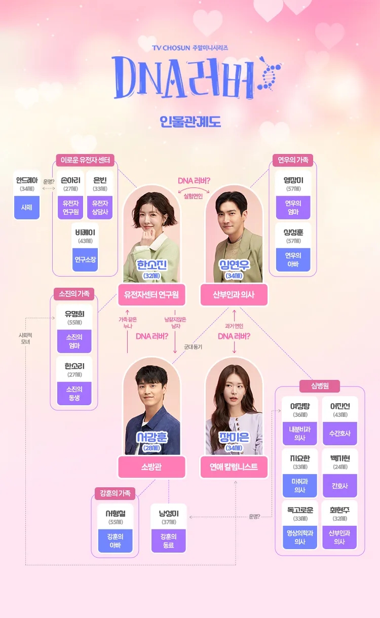 드라마 <DNA 러버>는 유전자라는 새로운 소재를 통해 로맨틱 코미디의 매력을 한층 더 끌어올릴 것으로 기대되는 드라마인데요. 각기 다른 개성과 매력을 가진 등장인물들이 펼치는 사랑 이야기가 어떻게 전개될지, 그리고 그 과정에서 어떤 유쾌한 사건들이 벌어질지 많은 관심이 모아집니다.